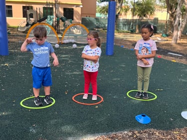 Physical skill development in preschool helps build the foundation for a healthy, active lifestyle. Activities like running, jumping, throwing, balancing, and team play improve coordination, strength, and confidence. Movement through music, games, and hands-on play also supports cognitive growth, social skills, and emotional well-being.